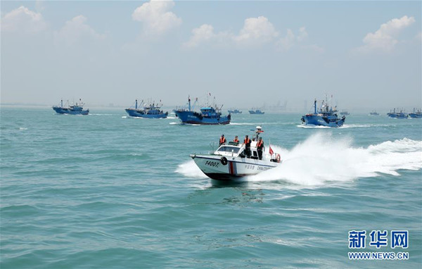 海警摩托艇在辖区海域巡逻(2020年8月16日摄)。 新华社发