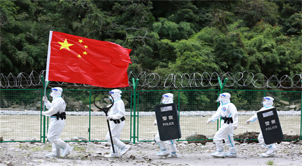 吉隆出入境边防检查站移民管理警察开展边境巡逻,强化边境管控。(肖富贵 摄)