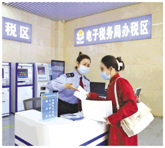 为确保制造业中小微企业缓缴税费政策落实落细,国家税务总局苏尼特左旗税务局开通绿色通道,简化办理流程,稳妥做好缓税退税工作。图为税务工作人员向纳税人讲解相关政策。