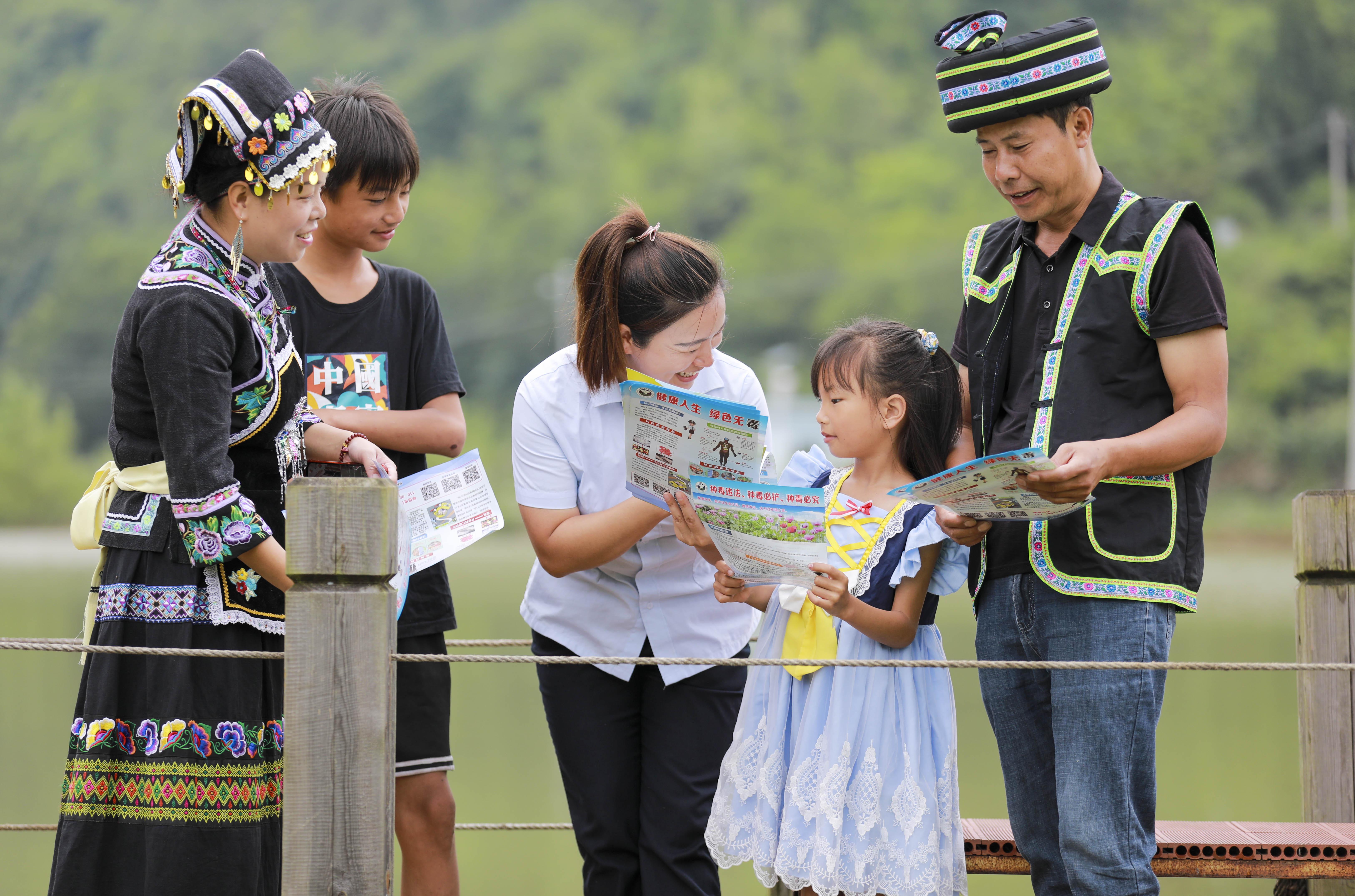 连日来,贵州省黔西市司法局钟山司法所工作人员走进田间地头、农家小院,向村民讲解禁毒、防溺水、未成年人保护法等知识,提高群众尊法学法守法用法意识。图为7月26日,司法所工作人员向钟山镇猫山村村民宣传禁毒和防溺水知识。