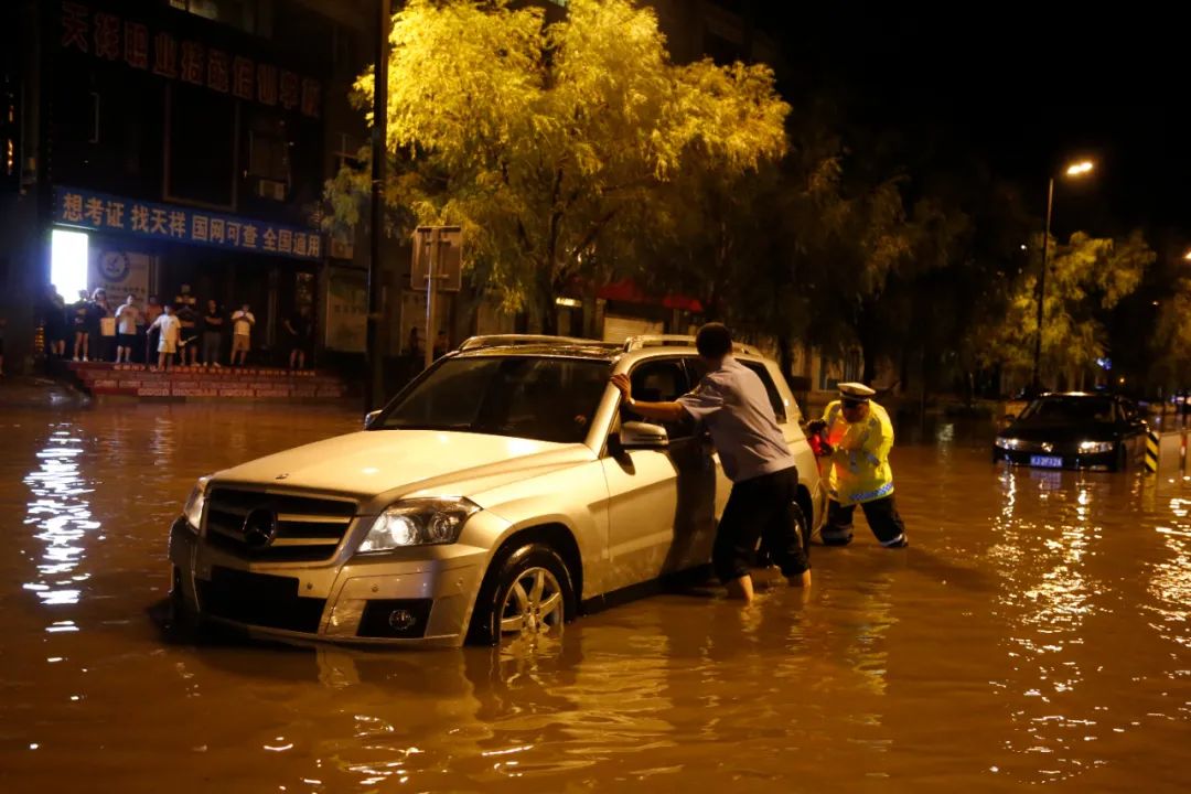 近日,吉林省持续迎来强降雨天气。汛情就是警情,松原市公安局连夜调配警力,深入防汛一线。扶余市公安局550名警力以及松原市公安局、其他县区公安机关支援的650名警力陆续到达指定地点,协助当地党委政府全力开展抢险救援、疏导交通、转移群众等抗洪抢险工作。图为松原市公安局民警奋力解救被困车辆。