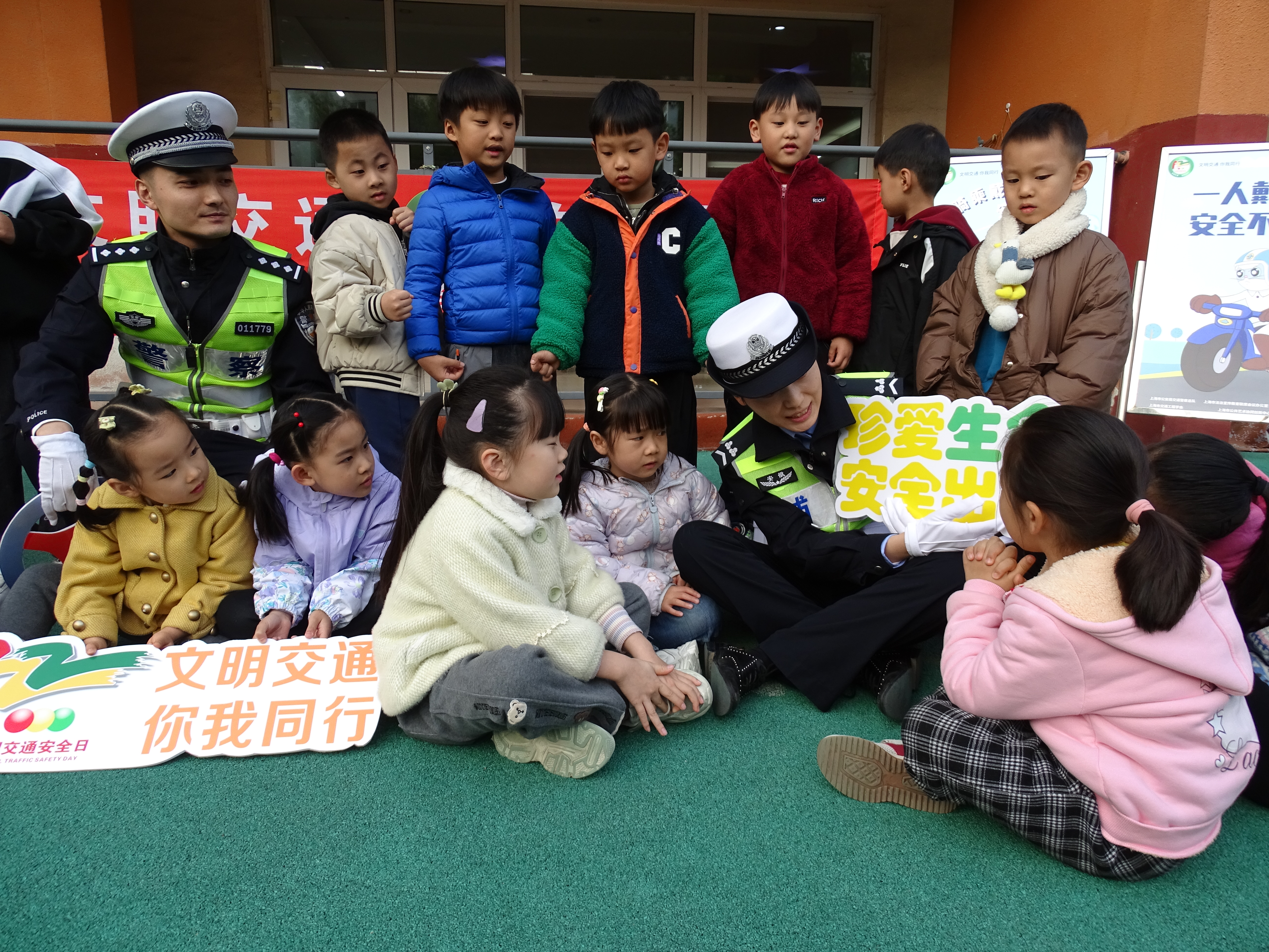 11月23日,安徽省芜湖市公安局交警支队镜湖大队组织开展“文明交通、你我同行”主题交通安全宣传活动。交警走进辖区环城南路幼儿园,通过互动问答等方式,提高孩子们道路交通安全意识。图为交警向孩子们讲解交通安全知识。