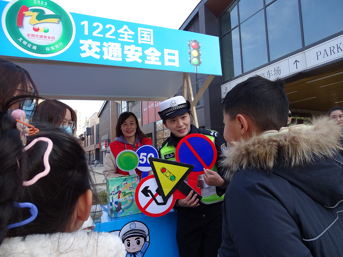 12月2日,安徽省芜湖市公安局交警支队镜湖大队组织民警开展“文明交通 你我同行”主题交通安全宣传活动,进一步提升群众交通安全意识。图为民警向群众讲解交通安全标志。