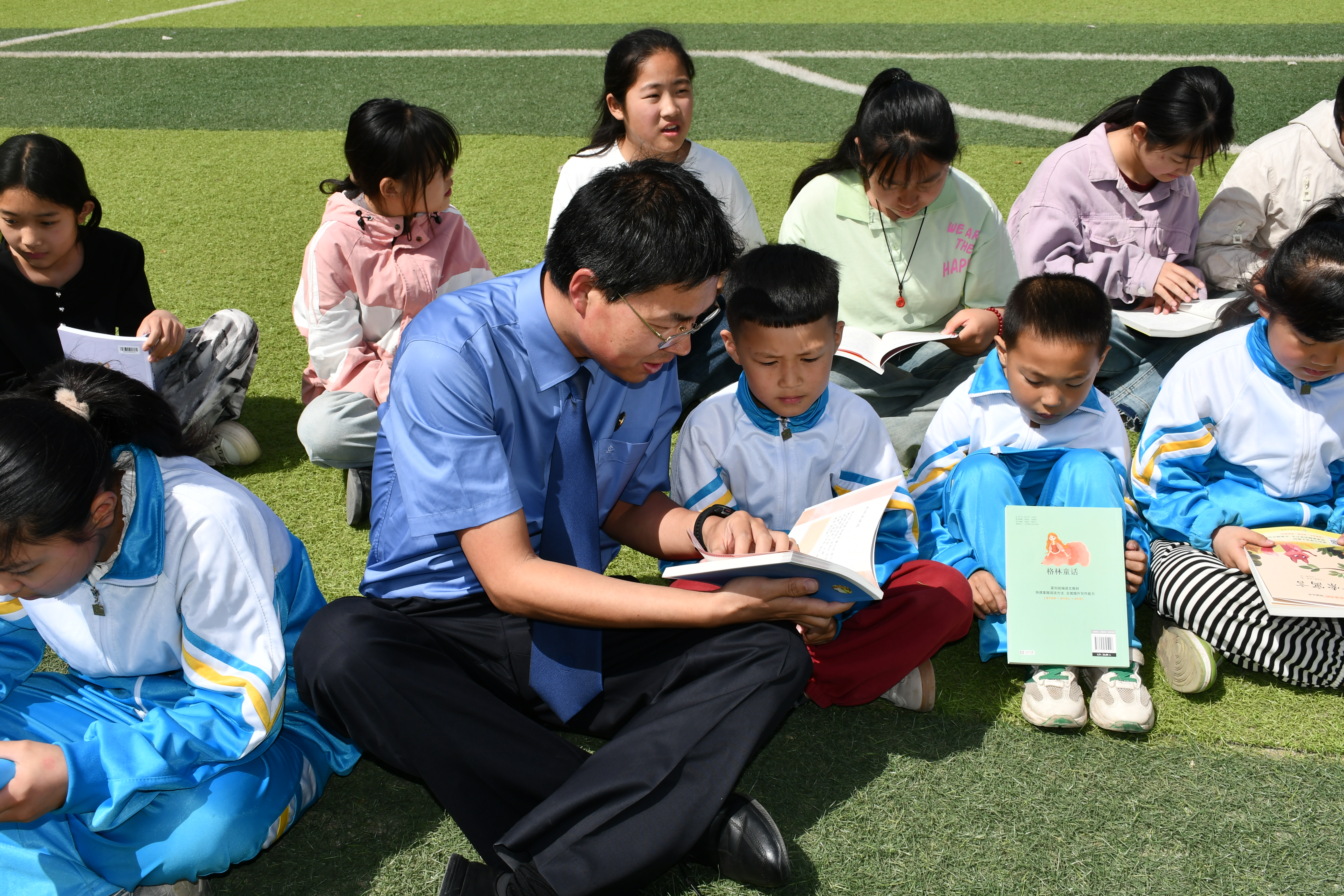 4月23日,河北省邯郸市广平县人民检察院干警走进平固店镇中心小学开展“检爱传校园 书香润童年”读书分享活动。图为干警带领学生们认真阅读精心挑选的图书。