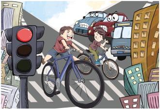 这些骑行儿童中,不少人有在机动车道骑行或闯红灯的交通违法行为。