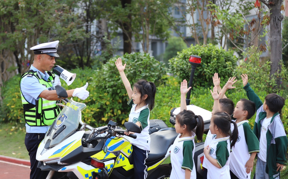 近日,江西省新余市公安局交警支队组织民警前往辖区校园讲授“知危险会避险”安全教育课,通过场景模拟、趣味游戏等形式,让同学们在寓教于乐中学习交通安全知识。图为活动现场。