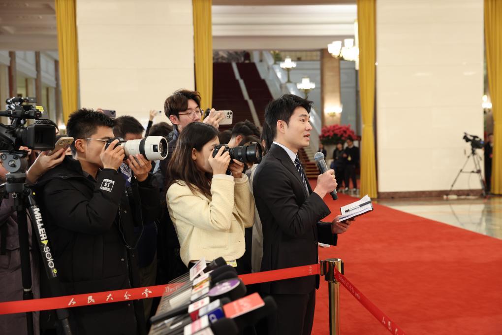3月5日,第十四届全国人民代表大会第三次会议首场“部长通道”集中采访活动在北京人民大会堂举行。这是记者在现场提问。