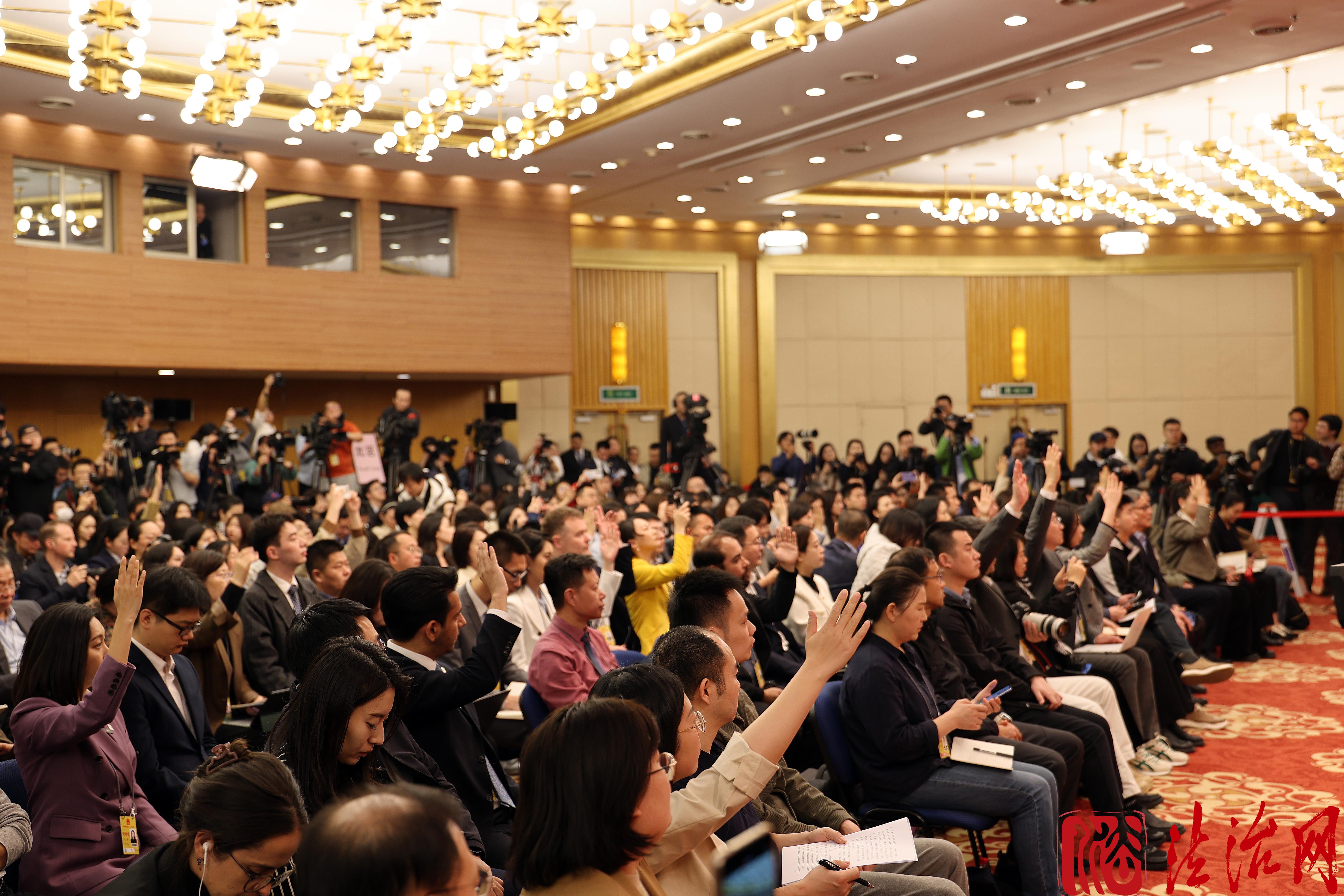 十四届全国人大三次会议于2025年3月9日(星期日)下午3时,在梅地亚中心新闻发布厅举行记者会,邀请民政部部长陆治原、人力资源和社会保障部部长王晓萍、住房和城乡建设部部长倪虹、国家卫生健康委员会主任雷海潮就民政、就业和社会保障、住房、卫生健康等相关问题回答中外记者提问。图为记者在现场提问。陈亦蒙 摄