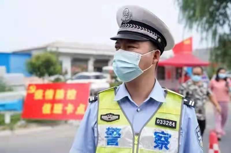 这已经是他连续奋战在疫情防控卡点的第七天,三伏烈日,汗流浃背,警服湿了干,干了又湿,口罩的形状烙在了黝黑的脸庞,沙哑的嗓子,不停地往嘴里放润喉片。