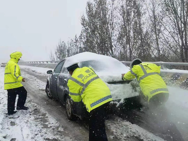 面对暴雪来袭,山东省济南市公安局长清区分局多警联动,巡警、交警和各派出所共同加大辖区治安交通巡防力度,通过在易发交通事故等重点路段采取定点执勤和巡逻管控相结合的措施,帮助群众解决上路期间发生的问题。11月7日上午10时30分,长清区交警大队在大学城丁香路、紫薇路等重点路段执勤中发现有抛锚车辆停在路中间,民警迅速前往救助,帮助过路受阻车辆及群众,将车辆推至安全区域,并疏导交通、维持通行秩序。崮山派出所民警在国道104线巡逻时接到群众求助,帮助遇困群众车辆。归德中队交警帮助遇困车辆上的老人,将老人搀扶到中队休息并送上热水。