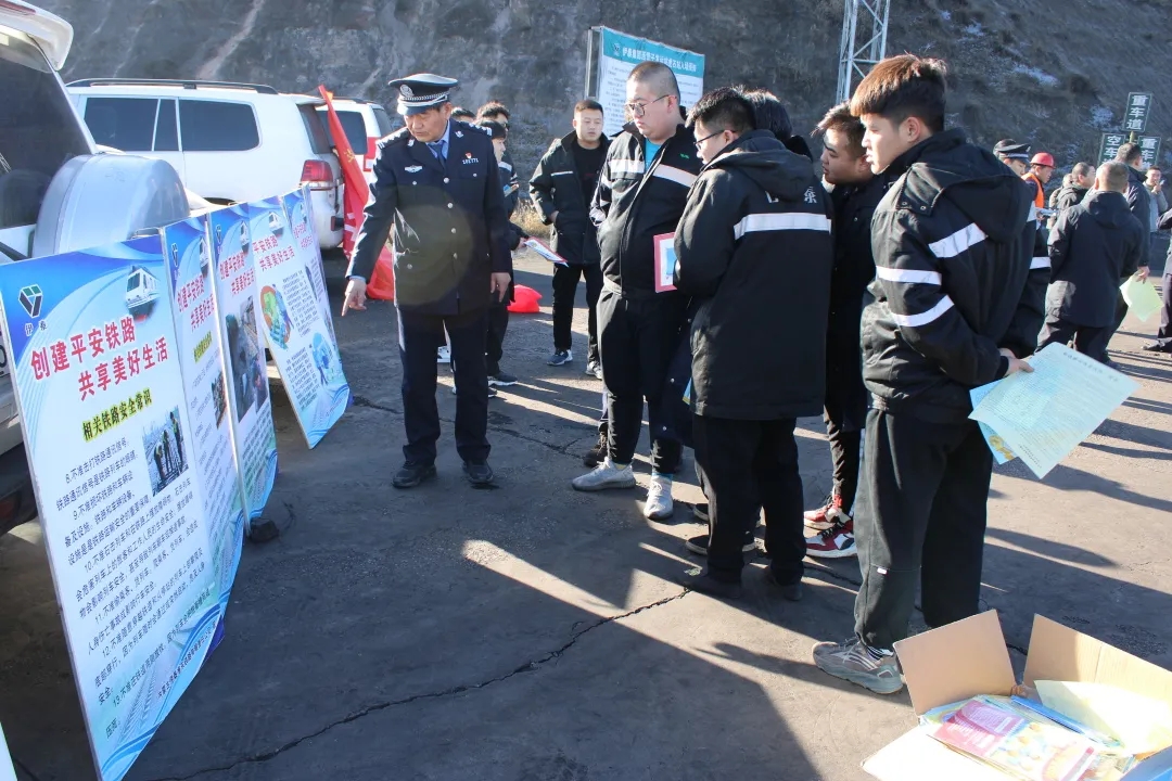 走进企业,筑安全防线。民警积极主动与铁路企业联系,发挥宣传组织优势,在辖区内部单位、火车站、集装站、煤台,通过张贴通告、悬挂横幅、摆放展板、电子屏滚动播放和发放宣传资料等多种形式进行宣传,倡导企业职工要树立“人民至上,生命至上”的安全意识。机车司机在行车过程中要严格遵守信号标志,做到“眼观六路,耳听八方”;在线路施工作业工人要做好施工安全防护,教育铁路职工要遵守铁路安全规则,践行“安全畅通靠大家、铁路连着你我他”,保护职工群众的人身和财产安全,保护铁路运输安全畅通。民警对车辆驾驶员进行了交通法律法规的安全教育,提醒驾驶员要严格遵守交通规则,保证自身安全,做文明交通的实践者。