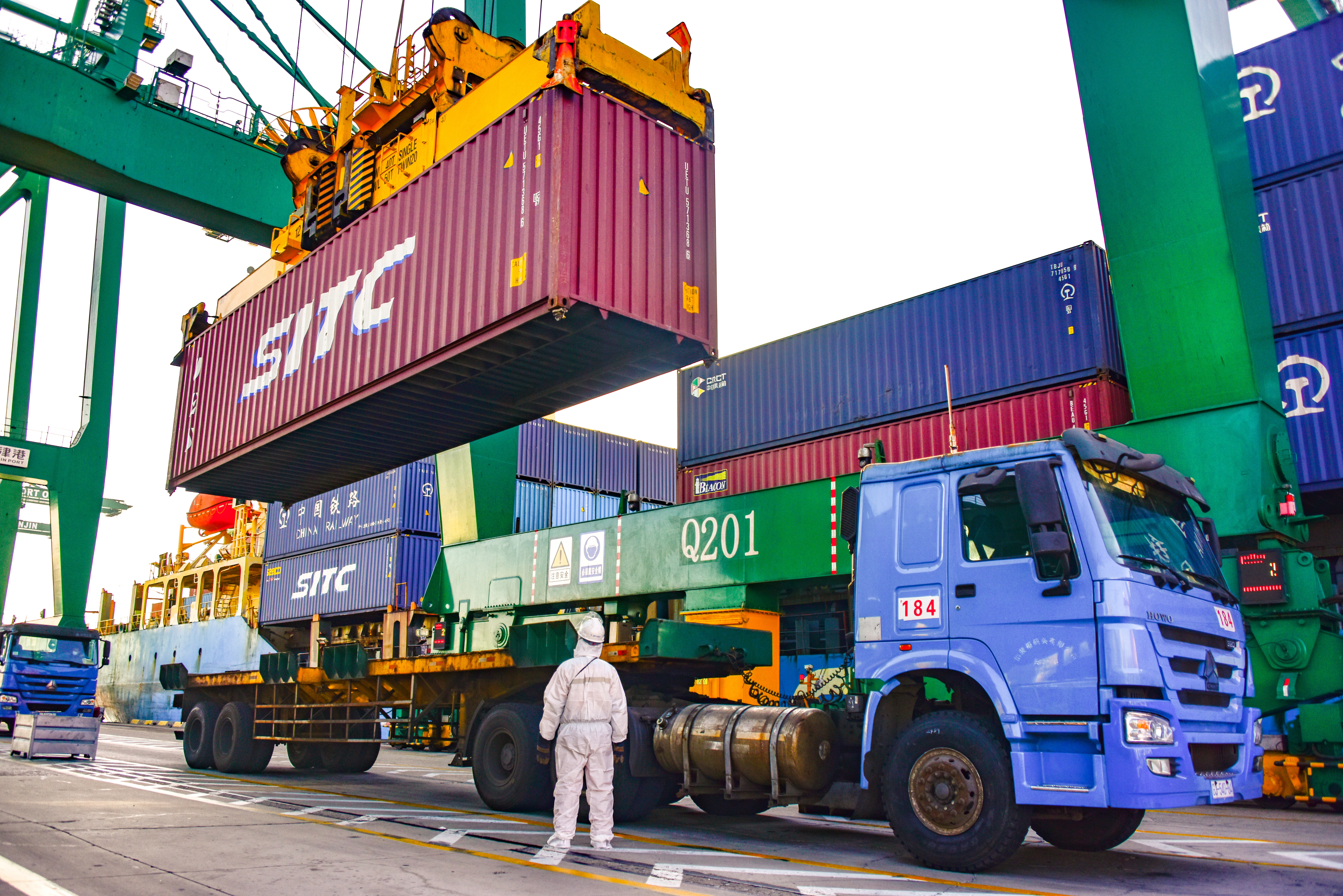 11日上午,靠泊在天津港集装箱码头的“海丰联发”轮准时开始卸船作业。“现场各队站的人员,马上开始冬奥物资作业,各相关人员请到位,重点做好组织,确保接卸安全……”随着天津港集装箱码头公司操作营销部值班经理张欢一声令下,卸船作业立即开始。不到两分钟,装载着冬奥会物资的40尺集装箱就顺利吊装下船,平稳装在集卡上直接驶离码头。