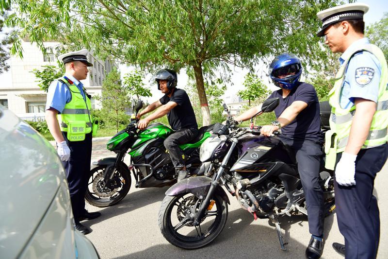 连日来,甘肃省临泽县公安局交警大队开展打击整治“飙车炸街”违法犯罪专项行动,切实维护道路交通秩序和公共安全。图为6月6日,交警正在严查道路“飙车炸街”违法行为。通讯员 安学海 摄