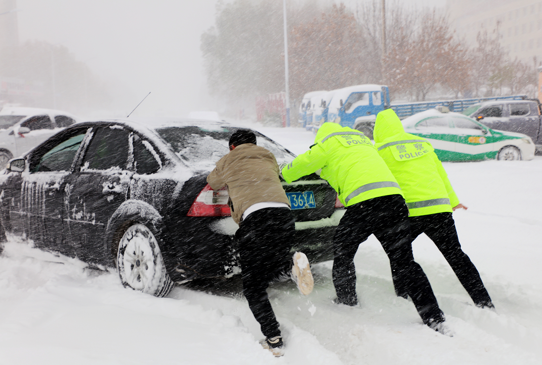 11月6日,辽宁省阜新市公安局交警支队启动恶劣天气预案,全体民辅警迅速上岗,疏导交通,救援车辆。