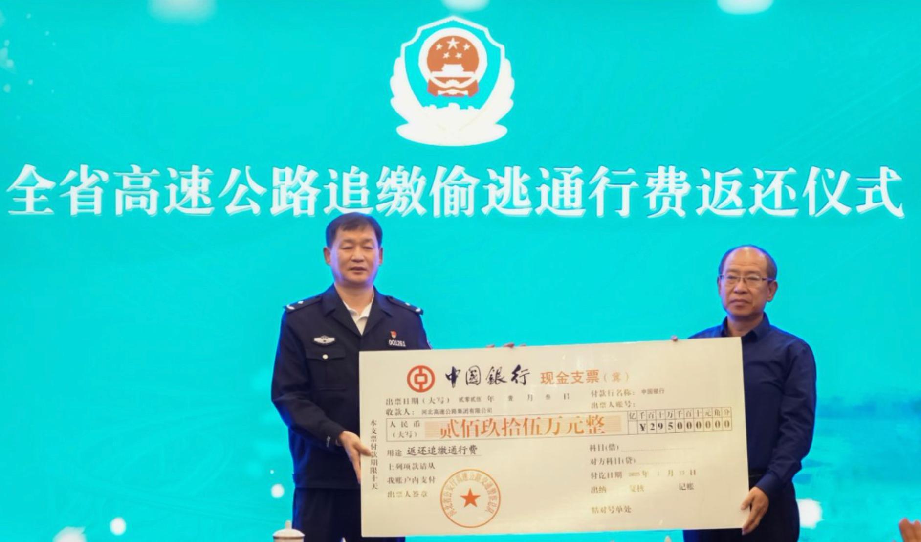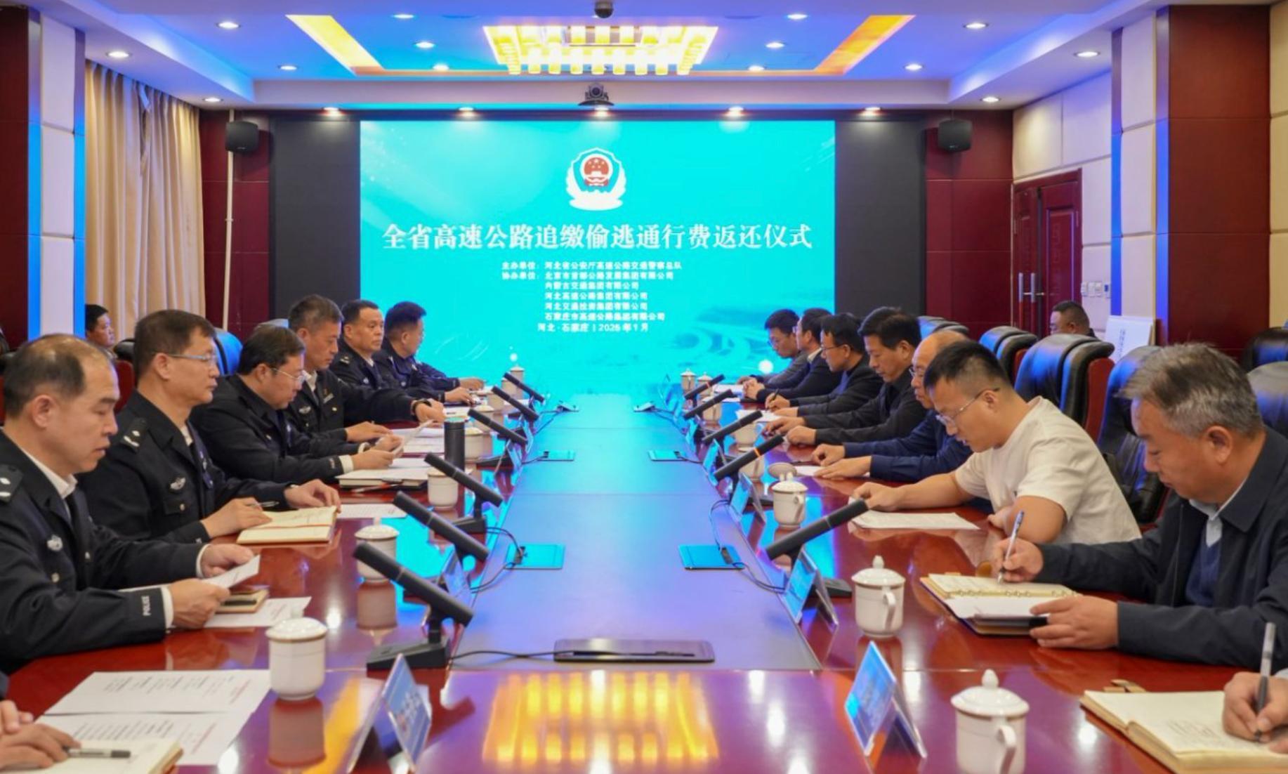 为集中展示高速交警依法刑事打击涉交类违法犯罪专项行动成效,1月3日,河北省高速交警总队举办全省高速公路追缴偷逃通行费返还仪式,向河北高速集团、河北交投集团、北京首发集团、内蒙古交通集团、石家庄市高速集团5家业主单位返还追缴偷逃通行费550万元。