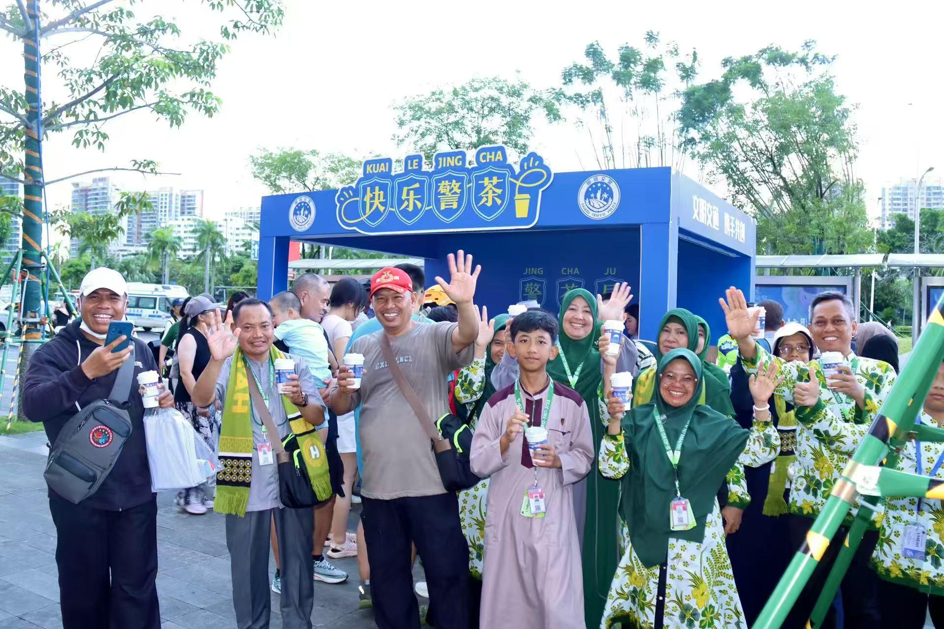 “警茶局”的魅力,还吸引了八方来客。10月2日下午,来自印度尼西亚的马克在导游的帮助下,成功答对了所有题目。他兴奋地举起手中的“警茶”,为这个创意活动点赞。