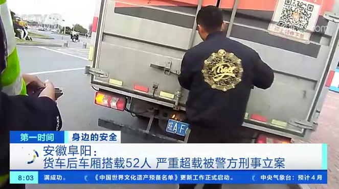安徽阜阳:货车后车厢搭载52人 严重超载被警方刑事立案
