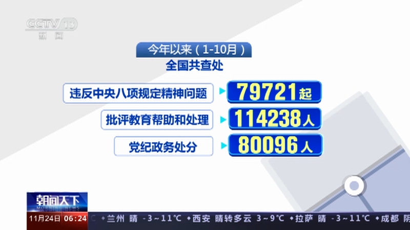 中央纪委国家监委 10月查处违反八项规定精神问题9567起