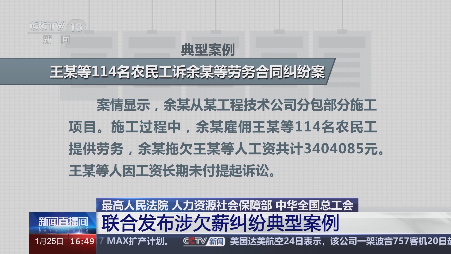 最高人民法院 人力资源社会保障部 中华全国总工会 联合发布涉欠薪纠纷典型案例