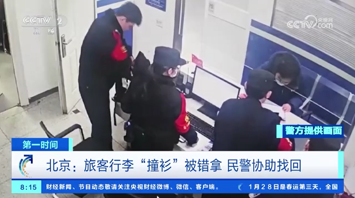 北京:旅客行李“撞衫”被错拿 民警协助找回
