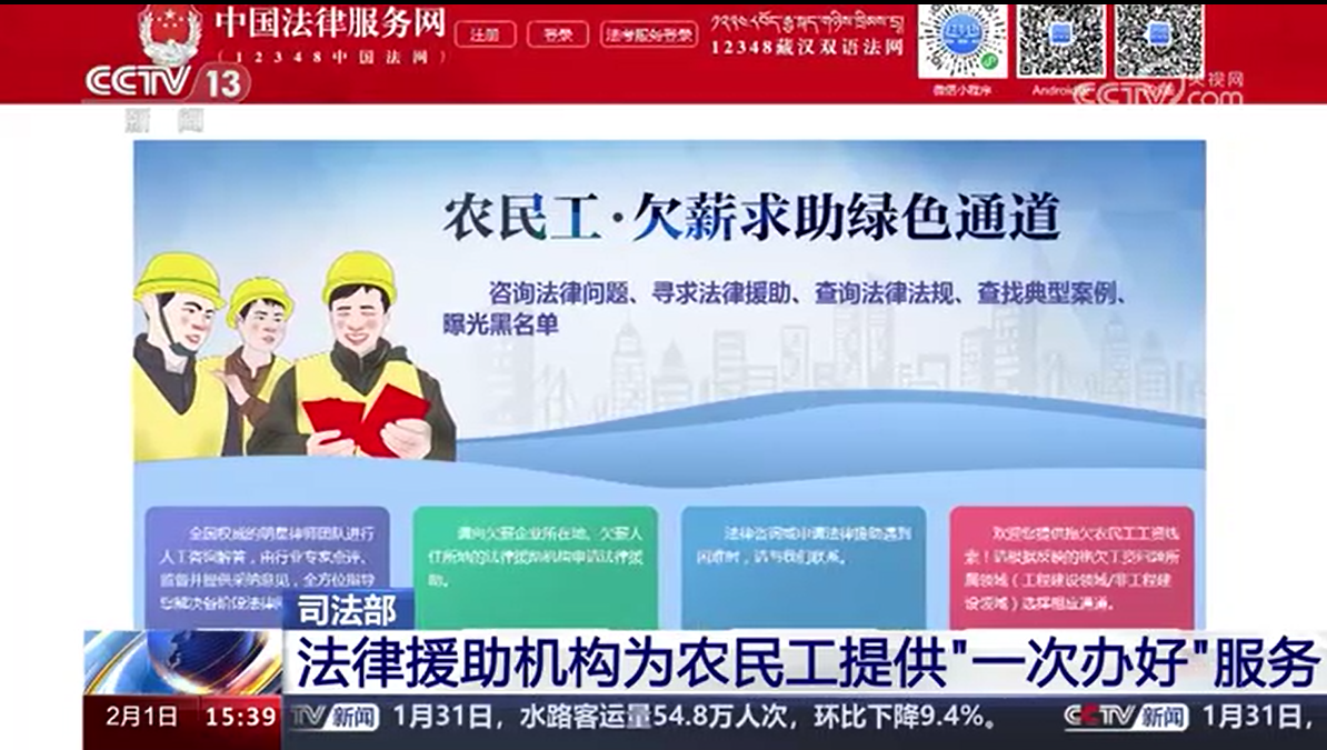 司法部 法律援助机构为农民工提供“一次办好”服务