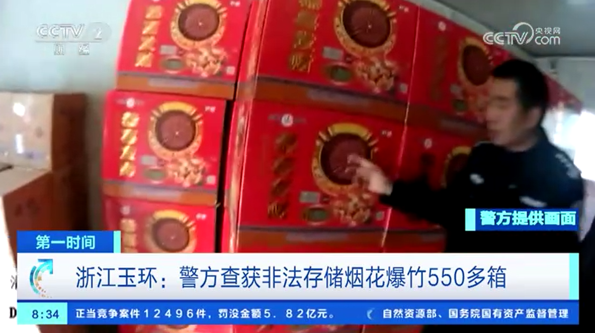 浙江玉环:警方查获非法存储烟花爆竹550多箱