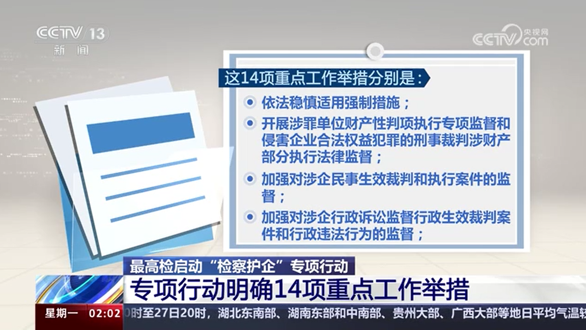 最高检启动“检察护企”专项行动 专项行动明确14项重点工作举措