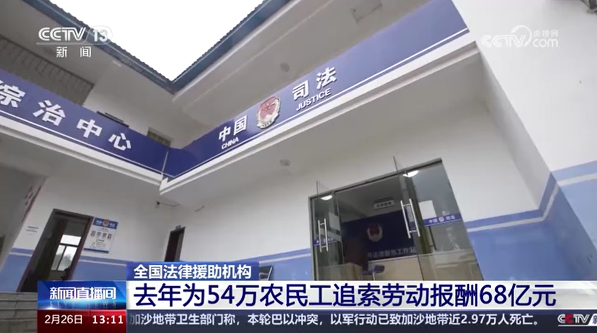 全国法律援助机构 去年为54万农民工追索劳动报酬68亿元