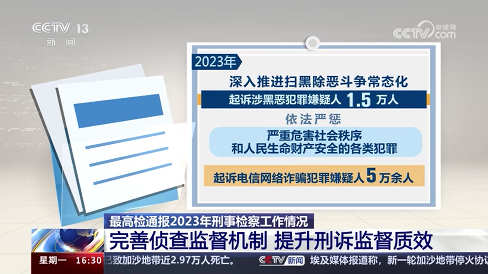 最高检通报2023年刑事检察工作情况 完善侦查监督机制 提升刑诉监督质效