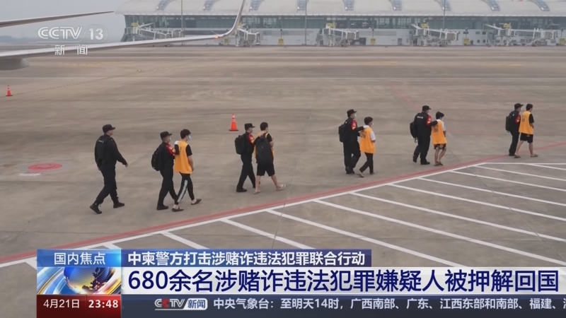 中柬警方打击涉赌诈违法犯罪联合行动 680余名涉赌诈违法犯罪嫌疑人被押解回国
