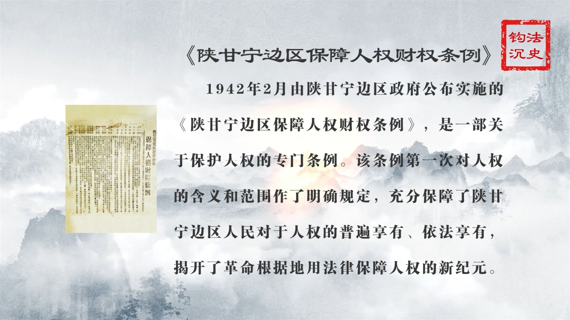 普法短视频:法史钩沉——《陕甘宁边区保障人权财权条例》