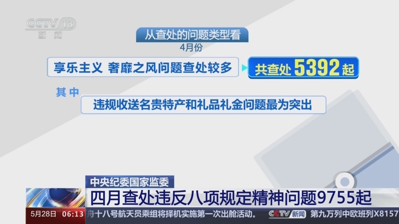 中央纪委国家监委 四月查处违反八项规定精神问题9755起