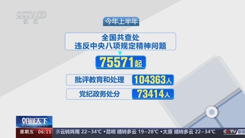 中央纪委国家监委 6月查处违反八项规定精神问题23110起
