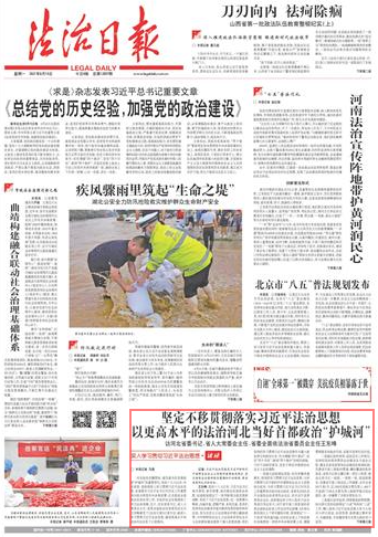 王东峰:党的十八大以来,习近平总书记亲自谋划、亲自部署、亲自推动全面依法治国,创造性地提出了一系列新理念新思想新战略,形成了习近平法治思想。这一思想博大精深、内涵丰富、逻辑严密、系统完备,是我们党领导法治建设丰富实践和宝贵经验的科学总结,是马克思主义法治理论中国化最新成果,为中国特色社会主义法治体系和社会主义法治国家建设提供了强大思想武器。我们坚持把学习贯彻习近平法治思想作为重大政治责任和政治任务,作为增强“四个意识”、坚定“四个自信”、做到“两个维护”的现实检验,不折不扣抓好落实,坚定不移走中国特色社会主义法治道路。