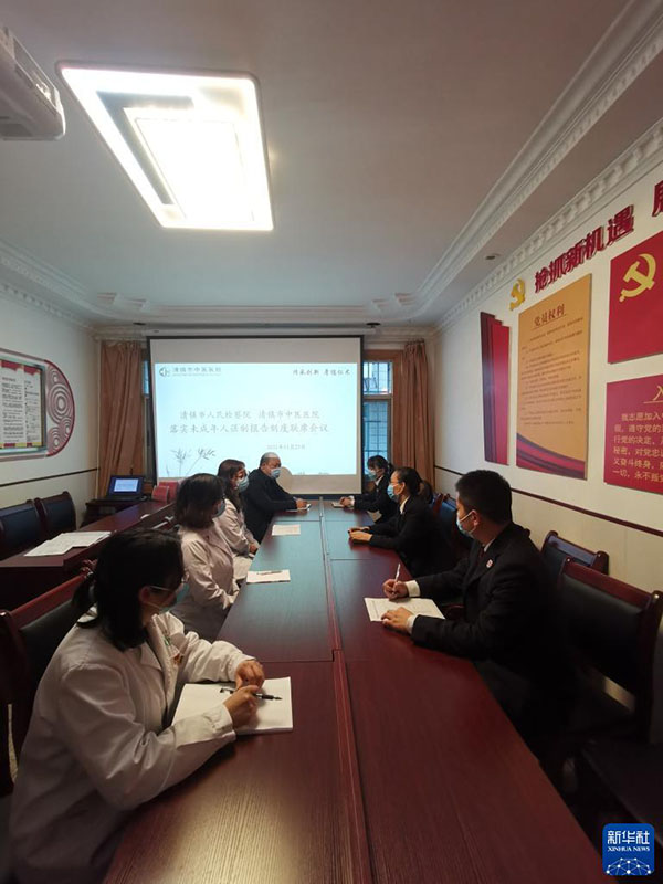 12月16日,贵州省清镇市检察机关与医疗机构召开联席会议,研究推进医疗机构落实侵害未成年人案件强制报告制度。新华社发(杜远敏 摄)