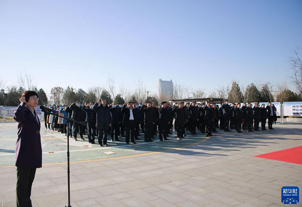 山东省滨州市举行2021年国家宪法日领导干部宪法宣誓仪式(12月3日摄)。新华社发(刘伟 摄)