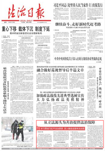 法律是治国之重器,良法是善治之前提,立法之于治国理政具有源头性的重要意义。在这一年的时间里,在习近平法治思想指引下,我们的立法工作坚持党的领导,坚持以人民为中心,立法步伐不断加快,数据安全法、个人信息保护法、乡村振兴促进法、市场主体登记管理条例、医疗保障基金使用监督管理条例等密集出台;科学立法、民主立法、依法立法深入推进,重大立法项目取得积极进展;在法治下推进改革,在改革中完善法治,推动与改革相关联、相配套的法律法规立改废释工作……