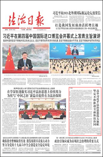 在中央全面依法治国工作会议召开一周年之际,中央依法治国办11月4日召开深入学习贯彻习近平法治思想座谈会。会议强调,要把深入学习宣传贯彻习近平法治思想作为一项长期的重大政治任务,在学深悟透做实上持续用力,加快建设良法善治的法治中国,为续写“中国之治”新篇章提供有力法治保障。