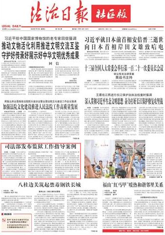 本报讯 记者赵婕 为充分发挥司法行政职能作用,指导和规范司法行政工作,更好满足人民群众的法律服务需求,7月8日,司法部发布4篇监狱工作指导案例,分别是“上海市青浦监狱冲动型罪犯朱某的矫正个案”“山东省泰安监狱罪犯李某精准教育转化案例”“众志成城化危情 真情教转挽灵魂——西青监狱对罪犯杨某的管理和干预实例”“让法治思维普照高墙‘最后一公里’——探索集中关押模式下的限减罪犯‘四步’教育法”,旨在深入贯彻习近平新时代中国特色社会主义思想特别是习近平法治思想,增强监狱执法透明度,提升执法公信力,向社会展示监狱教育改造工作成果,为指导规范全国监狱工作提供可推广、可借鉴的典型经验。