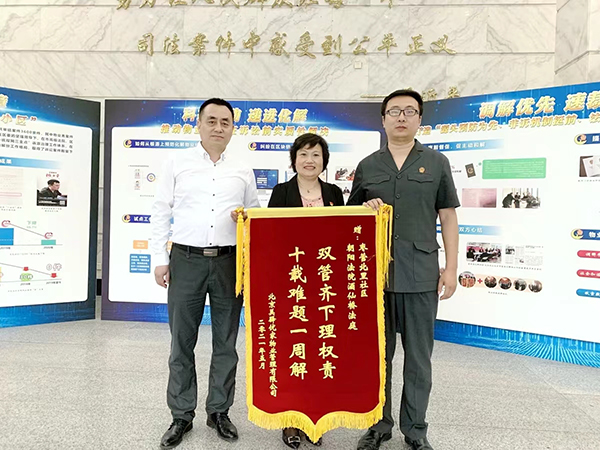 2021年5月,物业公司向枣营北里社区、朝阳区法院酒仙桥人民法庭赠送锦旗。