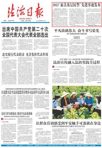 本报北京9月25日讯 记者董凡超 为深入学习贯彻习近平法治思想和习近平总书记关于新时代公安工作的重要论述、重要训词精神,大力弘扬伟大建党精神,激励广大公安民警奋进新征程、建功新时代,中央宣传部、公安部近日向全社会宣传发布2022“最美基层民警”先进事迹。