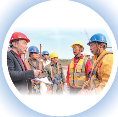 四川省华蓥市法治宣讲团成员在物流园区建设工地向农民工讲解相关法治知识。