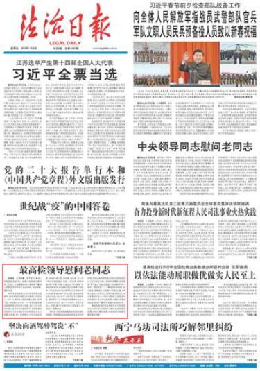 最高检其他院领导和检委会专职委员也以不同方式分别慰问了最高检老领导及家属、检察英模及家属,向他们致以新春问候和美好祝愿。