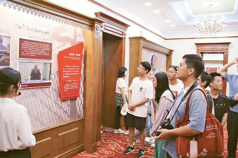 绥芬河国家安全教育展馆面积约1100平方米,由序厅、总体国家安全观、无名丰碑、周恩来展区等8个部分组成,展示了总体国家安全观、党的隐蔽战线光辉历史、当前斗争形势等内容。李大钊、周恩来等老一辈革命家在绥芬河出入境苏联时曾秘密下榻于此。作为早期红色秘密国际通道、秘密交通线掩护站点,展馆建筑如今成为珍贵的红色革命历史遗址。图为2023年8月15日,大学生在展馆内参观学习。国安宣工作室供图