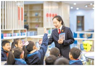 图为江苏省泰州市姜堰区人民检察院未成年人法治宣讲团的工作人员近日走进校园,给学生上法治教育课。 周社根 摄