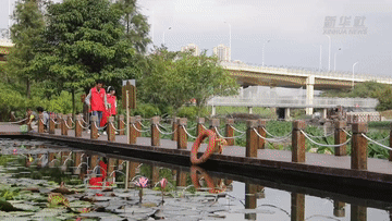 俯瞰一汪碧水,倒映其中,黄的、绿的、红的花草在水中摇曳,鱼儿游弋其间。初冬时节,位于广西南宁市兴宁区三塘镇的那考河湿地公园,几公里长的河道沿岸,花海、湿地、碧水、散步的人,满目和谐。