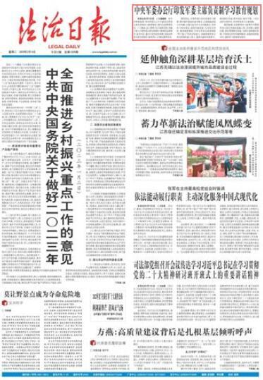 本报北京2月13日讯 记者廉颖婷 经中央军委批准,中央军委办公厅日前印发军委主席负责制学习教育规划。规划全面贯彻党的二十大精神,深入贯彻习近平强军思想,明确了深入开展军委主席负责制学习教育的总体要求、基本内容、重点任务和组织保障,是推动军委主席负责制学习教育深入开展的重要举措。