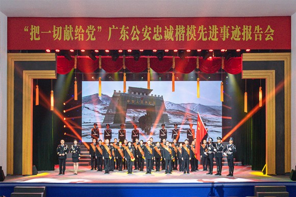近年来,广东省公安机关在省委、省政府和公安部的坚强领导下,始终坚持听党指挥的忠诚本色,不断增强维护全省政治安全和社会稳定的能力,圆满完成各项繁重艰巨的公安工作任务,涌现出一大批先进典型和英雄人物。报告会以广州市公安局刑事技术所所长戴维列、汕头市公安局金平分局禁毒大队大队长李小燕、佛山市公安局刑警支队第五大队大队长陈恺、东莞市公安局石碣分局石碣派出所原三级警长黎伟标、德庆县公安局官圩派出所二级警长聂桂清、省公安厅情报指挥中心科长陈刚等6位典型人物的先进事迹为主线,紧扣“忠诚”主题,围绕庆祝建党100周年,通过访谈、自我讲述、时空对话、诗歌朗诵等多种艺术手法,呈现广东公安在党旗引领下,打击犯罪、服务人民的一个个真实故事。通过刻画一位位典型人物对党、对人民、对公安事业的忠贞情怀,以及为社会平安付出的心血和牺牲,展现了近年来广东公安在扫黑除恶、疫情防控、技术创新、维护稳定、服务人民等方面付出的巨大努力和取得的显著成绩,讲述了广东公安为增强人民群众获得感、幸福感、安全感而不懈努力的奋进历程。