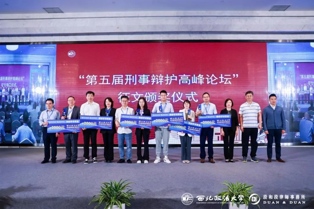 开幕式环节,举行了西北政法大学第五届刑事辩护高峰论坛征文颁奖仪式,为12位来自理论界与实务界的论文获奖作者颁发奖状、奖杯。