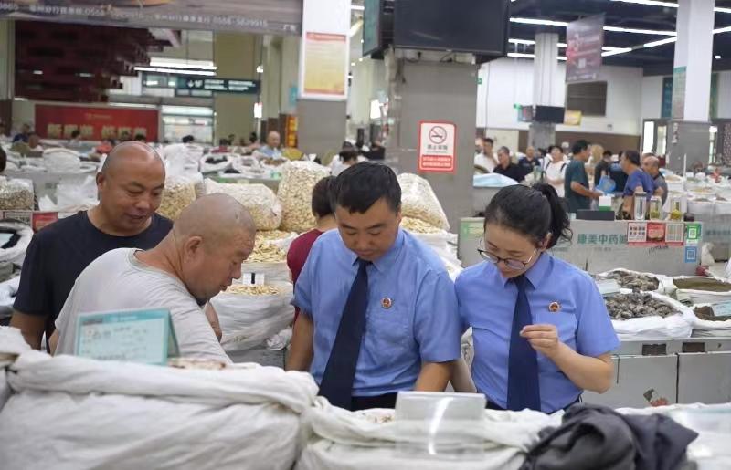 图为亳州市谯城区检察院检察官在亳州中药材交易市场进行药品质量安全检查。张哲 摄